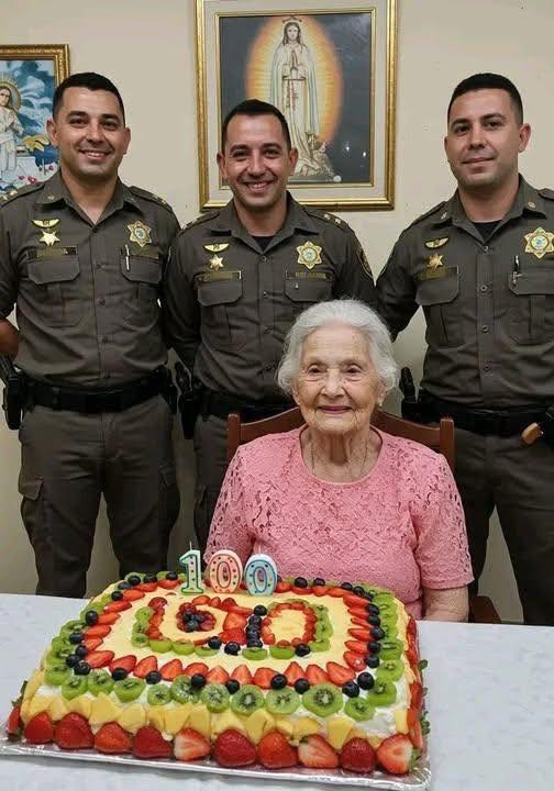 The image tells a story that words alone can barely hold. At the center sits a gentle, smiling woman celebrating her 100th birthday, surrounded by love, gratitude, and the legacy of a life that shaped generations. Behind her stands more than family pride — there stands proof of resilience, sacrifice, and unconditional love.