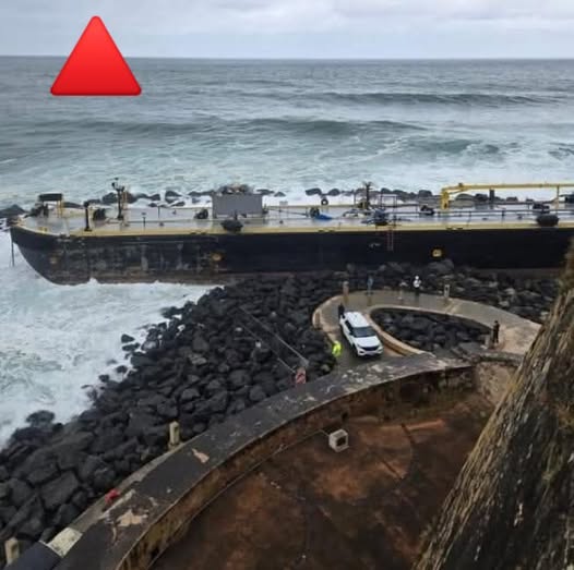 According to official sources, the vessel became grounded along the rocky breakwater near El Morro, one of Puerto Rico’s most iconic landmarks. The sight of a large fuel barge positioned so close to the historic fort and shoreline quickly circulated among onlookers and on social media, raising questions about potential risks and the cause of the grounding. While the visual impact of the situation was striking, early statements from those involved emphasized that the immediate risk level remained low.