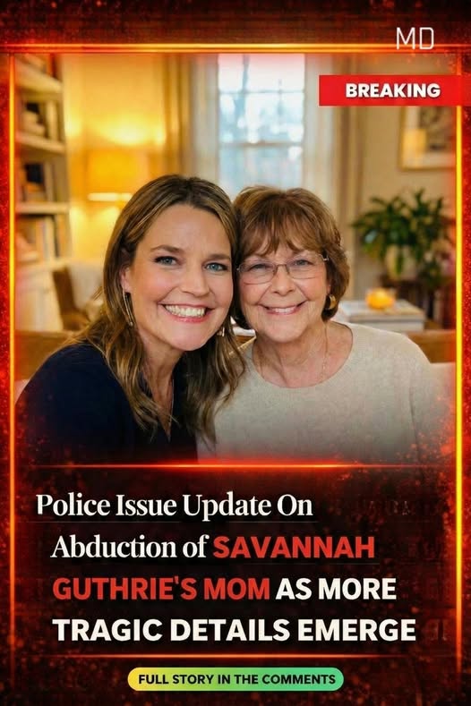 Authorities have shared new details in the ongoing search for Nancy Guthrie, the mother of journalist Savannah Guthrie, after her sudden disappearance from her Arizona home raised serious concerns. Investigators reported that several elements at the residence indicate she likely did not leave on her own. Officials noted that her vehicle remained parked in the driveway and that there were signs suggesting someone may have entered the home unexpectedly. Given Nancy’s mobility limitations, authorities believe it would have been difficult for her to travel far without assistance, increasing urgency around efforts to locate her safely.