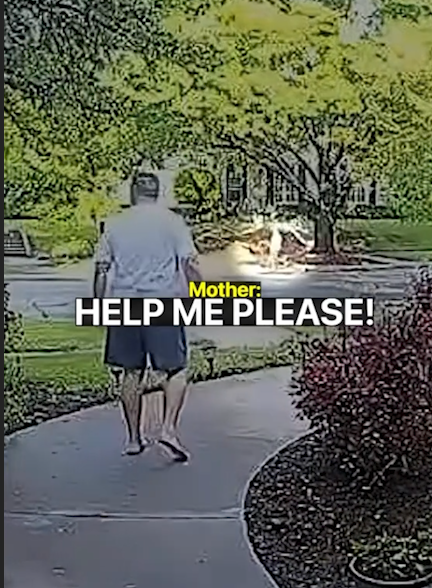 In the video, the man freezes for a split second, clearly startled by the sudden cry. Within moments, his relaxed walk transforms into a fast, determined stride as he heads toward the source of the distress. The viewer can’t yet see what’s happening, but the urgency of the mother’s voice makes it clear that something serious is unfolding just beyond the frame.